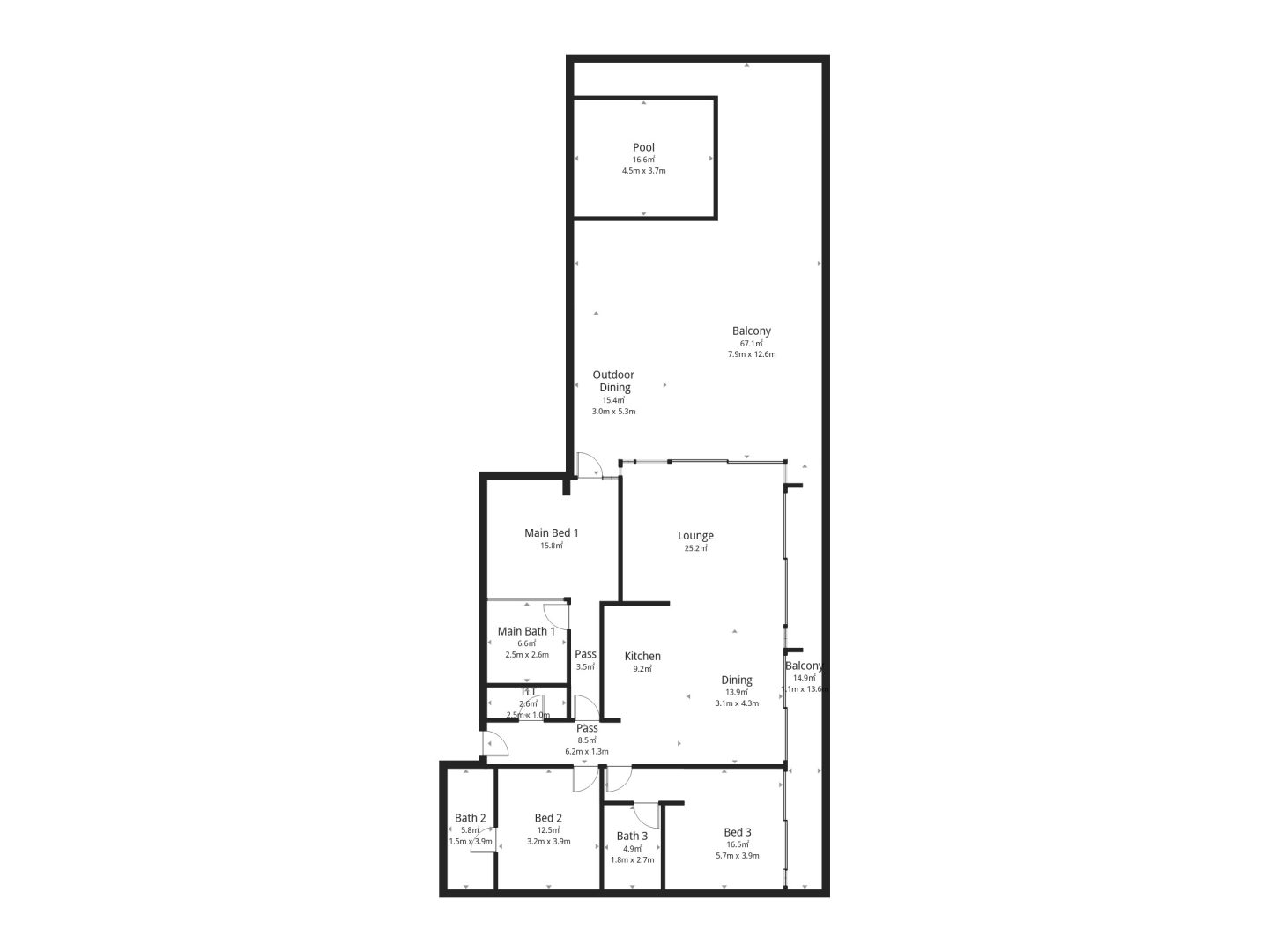 β’ Spacious & Modern: Three generously sized bedrooms, each with a private en-suite bathroom, crafted for ultimate comfort and privacy.