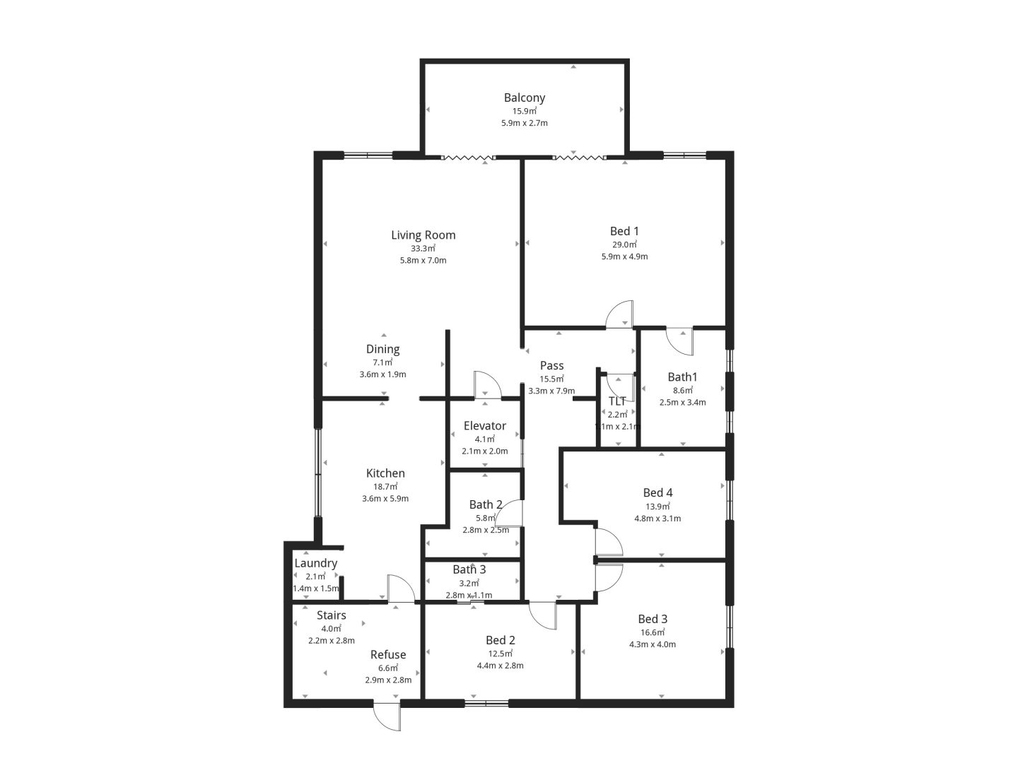This spacious 4 bedroom apartment comprises the entire floor with windows all around.