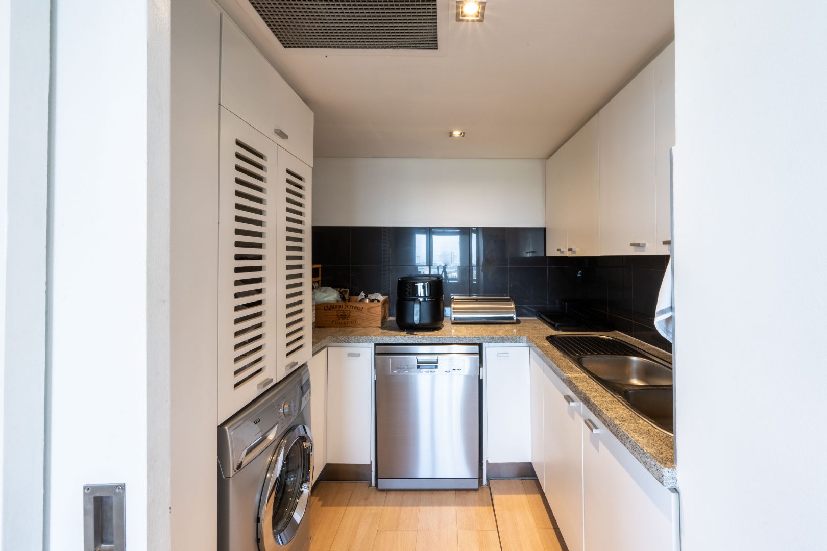 Finishes include laminate flooring in the living areas and tiles in the kitchen and bathrooms. While the apartment is well maintained, it presents an excellent opportunity for modern upgrades to suit a buyer’s personal style.