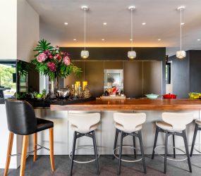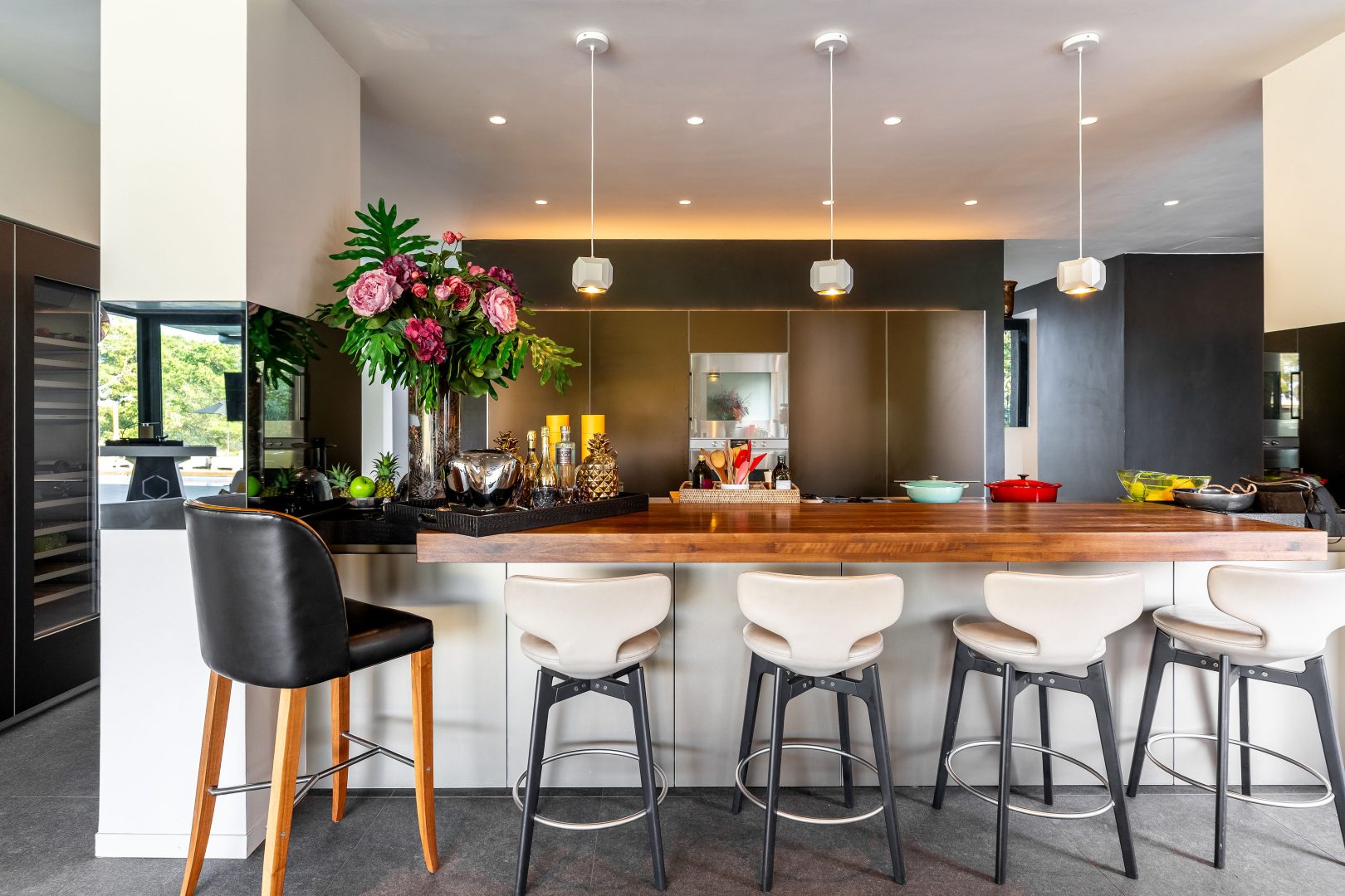 The sleek Bulthaup kitchen, valued at R3.5 million and fitted with premium Gaggenau appliances, is the heart of the home—perfect for both everyday living and entertaining. Accommodation comprises six luxurious en-suite bedrooms (including two guest suites downstairs), a private upstairs study, and versatile family spaces including a TV/playroom and a separate jacuzzi room.